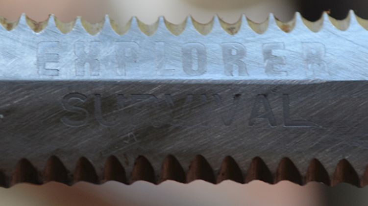 The Explorer Survival II knives are not serial numbered. The blades are of a better quality than the handles, have a brushed finish and have a large electro-etched "EXPLORER / SURVIVAL II" on the blade as well as "440 STAINLESS / 21-041 JAPAN" on one side of the blade ricasso. The opposite side of the ricasso is blank.