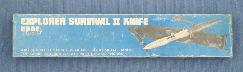 Earlier boxes were marked "EXPLORER MILITARY MARK II SURVIVAL KNIFE". Later boxes are marked "EXPLORER SURVIVAL II KNIFE". The knife title change may have been made because of Gerber registering "MARK II" as their trademark.