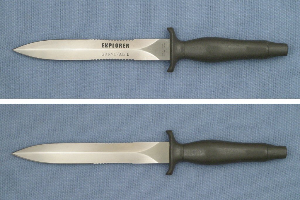 The "EXPLORER SURVIVAL II KNIFE" copy was one of the Edge Mark Brand knives from Japan, manufactured for the Gutmann Cutlery Company, Inc. of Mt. Vernon, NY.